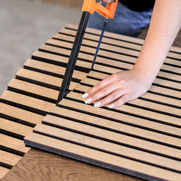 O Painel de Design NexaForm combina filtro reciclado e ripas de MDF em um painel de 270 cm × 110 cm, proporcionando um visual contemporâneo e melhorando a absorção sonora. Fácil de instalar com fita dupla face ou parafusos, é resistente a umidade e ideal para salas de estar, escritórios e espaços comerciais.